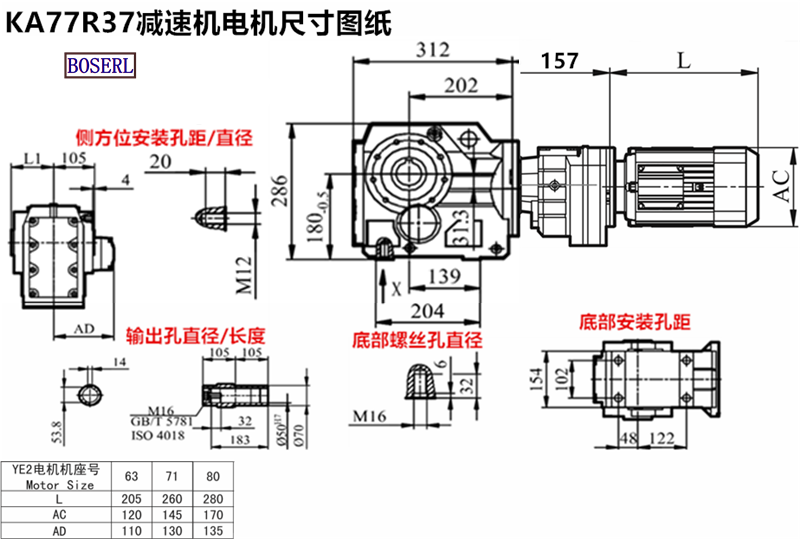 | 齒輪減速機 | KA77R37Y71M4 | KA77R37DRS71M4 | KA77RF37Y71M4 |
